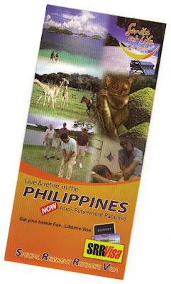 And after having lived here over a year don't I have a visa? Well I do. And I'm glad of that. But Jeanne and Jerry will be in need of one for their stay here. They will enter the country with a standard visitors visa and then begin application for a SRRV - that is a Special Resident Retirement Visa. So I've been looking into that so they could be apprised of the necessary red tape busting documentation to bring along. Such as medical certificate showing them to be "not afflicted with any loathsome or contagious disease", a police clearance so they won't be adding to the resident criminal element, proof of at least a $1000 monthly pension, marriage certificate, and investment funds. The first four to be authenticated by the Philippine Embassy before coming.